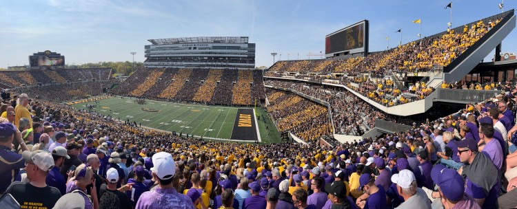 “Thanks for coming,” said an Iowa fan, as Vicki and I walked out of Kinnick Stadium near the end of Iowa’s 40-16 dismantling of Washington on Saturday. “I hope our fans here treated you well.”