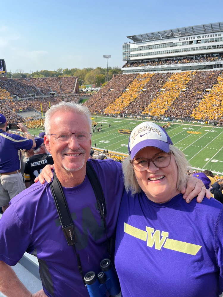 Vicki and I at the September 20 Apple Cup in Martin Stadium. That’s the Cougar Football Complex in the background. We were surrounded by Cougar fans, who were absolutely giddy that on this day beer was sold for the first time in the stadium (how ironic!). I asked the beer-drinking guy next to me if this was his first beer in the stadium. “No, it’s my fourth,” he replied. He was on beer No. 4 for the game.