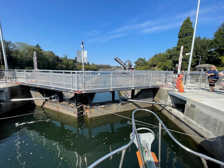 After we “drop down” to sea level, the doors on the Ballard Locks slowly open up, and we’re on our way.