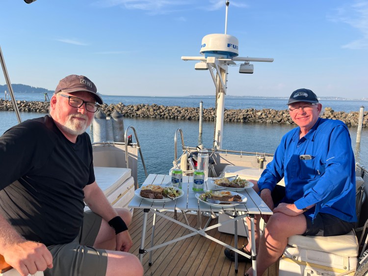 We made it through the trip, including the harrowing Ballard Locks, without incident. And that’s saying something. When it comes to boating, Kent is detail-oriented and knowledgable. His deckhands – first-mate Bob and second-mate Rick – are borderline teachable. But we did learn – well mostly – to correctly tie rope to a boat cleat.