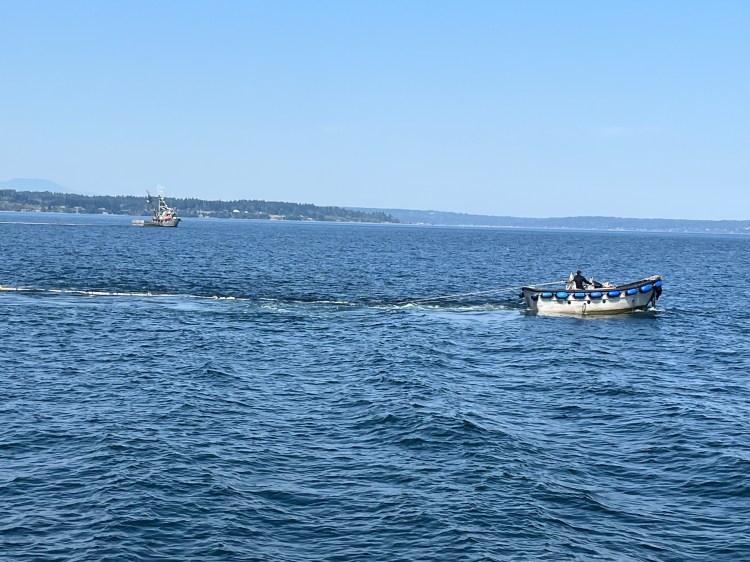 As we motored along shipping lanes and dodged a Washington State ferry shuttling cars and passengers between Seattle and Bainbridge Island, we saw dolphins, seals, and tribal fishermen setting gill nets with the help of a “skiff boat.”