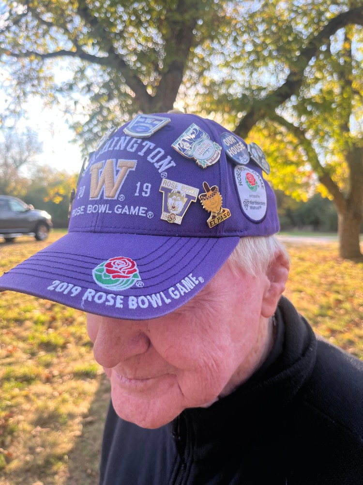 Vicki and I before during pre-game. The stadium would be full by the time the game began.Some Michigan tailgaters along our walk to the stadium. The game started at noon. Michigan fans started tailgating at 6 a.m.We met two Husky fans, brothers Dale and John Galvin, at our hotel in Dearborn the night before the game. They had already made parking reservations and invited us to ride with them. Great guys.Dale Galvin has been a Husky football season tickets for nearly 60 years. His cap is adorned with buttons from different bowl games UW has played in. He said his favorite bowl was the 1984 Orange Bowl, when UW upset heavily-favored Oklahoma. Dale has a law degree from UW, and owns a realty law firm in Mountlake Terrace.