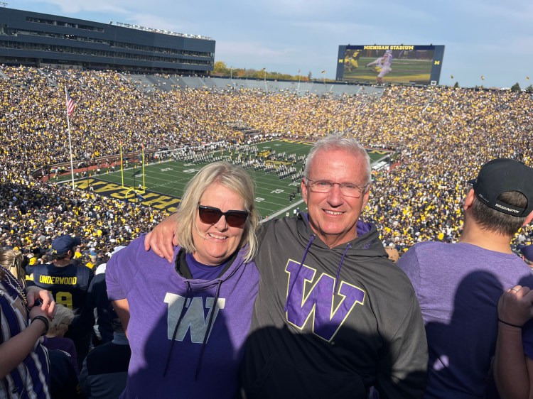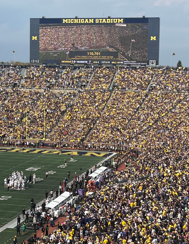 THEY SHOW UP EARLY: My daughters kid me that my sporting event philosophy is “arrive early, stay late.” Michigan fans show up early. We arrived two hours early, and half the stadium was full. Every seat – 110,701 on this day – was filled by kickoff. We encountered the same thing last year in Iowa City. It’s a late-arriving crowd at Husky Stadium, for sure. Sometimes, it’s outright embarrassing. Not Michigan. Maybe it’s a Midwest thing. Maybe I should live in the Midwest.