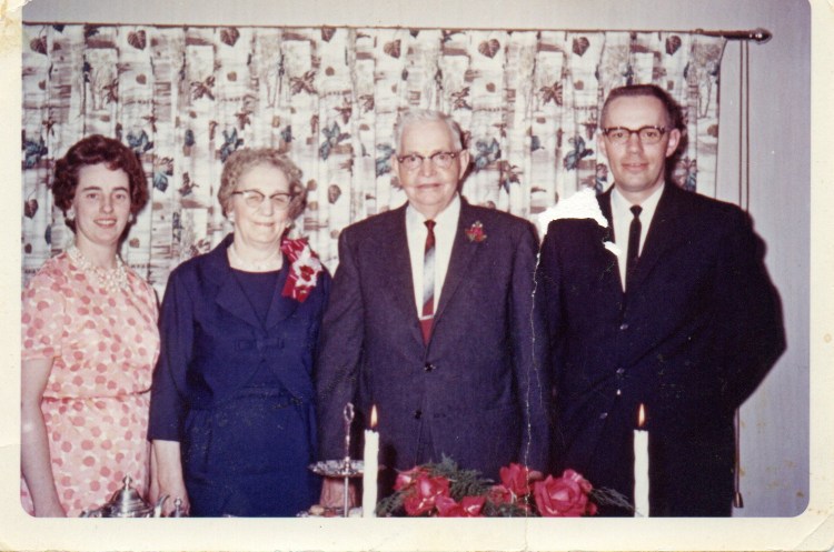 My parents with my grandparents, John and Lizzie Lund, in a photo taken on March 24, 1963. The occasion was be my grandparents’ 40th wedding anniversary, held at my parents’ home on the Beaver Marsh Road west of Mount Vernon.