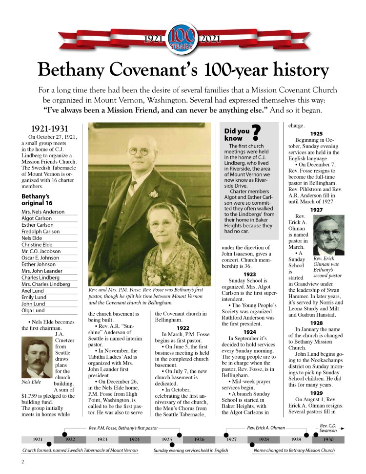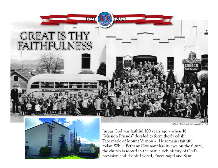 Bethany Covenant Church of Mount Vernon recently turned 100. As a nearly-lifelong attender of BCC I was on the committee that planned the centennial celebration October 23-24. I guess that makes me an old guy.